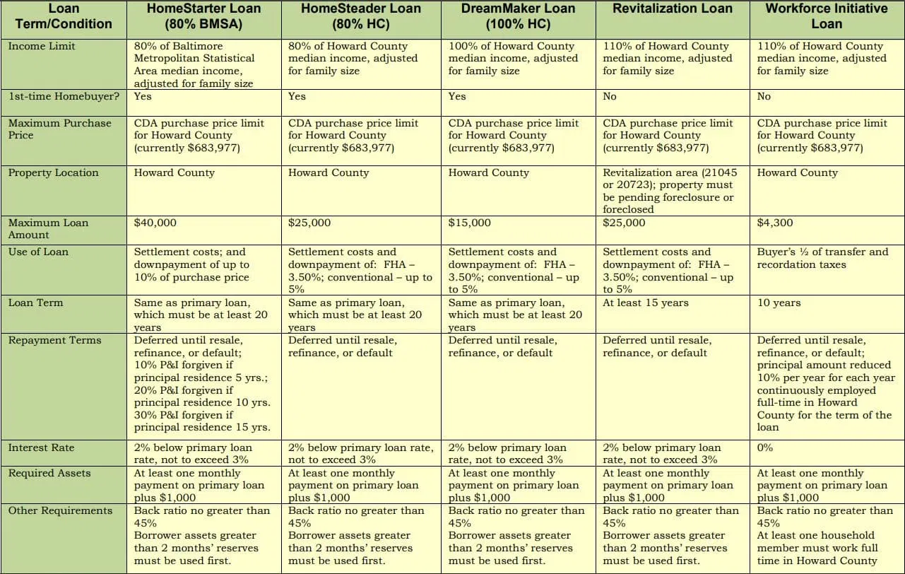 Howard County provides down payment and closing cost assistance which may be paired with any loan program that we offer.