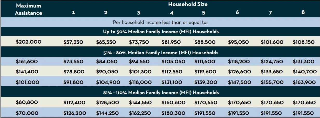 The HPAP loan is deferred and repaid without interest. For households with income below 80% of area median income (see chart below), there are no monthly payments on the HPAP assistance loan. For households with income above 80% of area median income, there are no payments for the first five years, and then the funds are repaid over a forty year period with no interest. The remaining sum is due in full upon moving out or selling. Therefore if you plan to move out of the property and convert it to a rental, this program may not be a good fit.