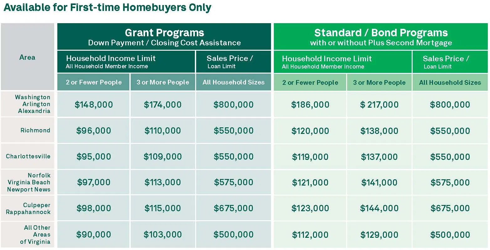 We can offer down payment assistance financing in Virginia, made possible through Virginia Housing (VHDA). VHDA offers conventional, FHA, USDA, and VA loan programs.